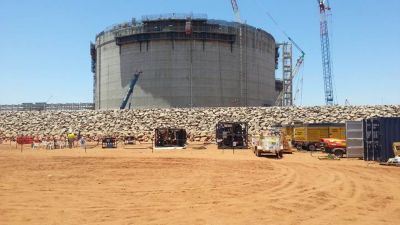 2016 年 4 月 20 日,比利时安特卫普:Wheatstone LNG 项目正在阿什伯顿北部(位于西澳州昂斯洛镇以西 12 公里处)如火如荼地进行。该项目将由两大液化天然气生产线、一个家用燃气 (DOMGAS) 加工厂和多个冷凝水处理设施以及其他的支持设施、产品存储装置、产品装载设施 (PLF)、材料卸载设施 (MOF) 和其他基础设施组成。