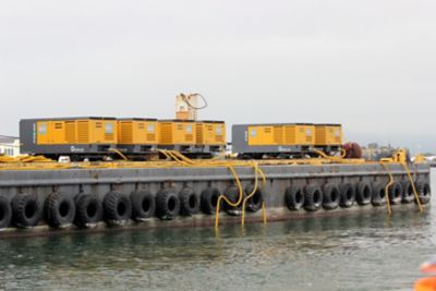 2015 年 12 月 7 日,美国休斯敦:阿特拉斯·即胜体育租赁公司无油空压机在桥墩内爆过程中创建了水下缓冲区。旧金山海湾是加利福尼亚一个重要的生态栖息地,当人们在讨论应如何拆除具有 80 年历史的旧金山-奥克兰海湾大桥的 21 座桥墩时,炸药和内爆等字眼引起了人们的关注。