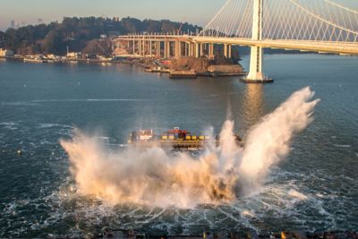 在海湾爆炸的成功示范现可用于其他桥墩,即旧金山和奥克兰之间的新人行天桥建成后海湾大桥的所有遗留结构。