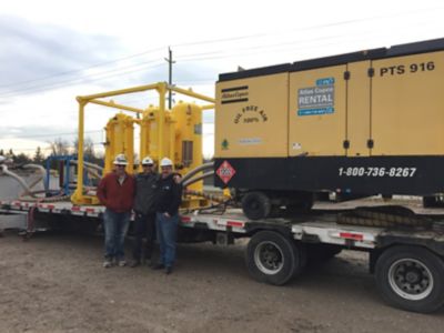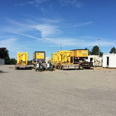 一般对于这类应用,竞争对手会先干燥压缩空气,然后使用某种类型的柴油燃烧箱进行加热。这种方法可能会引起某些问题,比如加热过程出现火焰,以及使用柴油产生火焰。阿特拉斯·即胜体育租赁团队设计了一种定制、节能的干燥热空气解决方案,该方案利用 PTS 1600 CFM Arctic Pack 空气压缩机和 1600 CFM 吸附式干燥机以及附加热交换器。我们的创新方法使用 100% 无油压缩热空气,能够绕过后冷却器直接使用薄片型热交换器,因而能在提供充足气流的同时,消除任何对燃料和电力的额外需求。